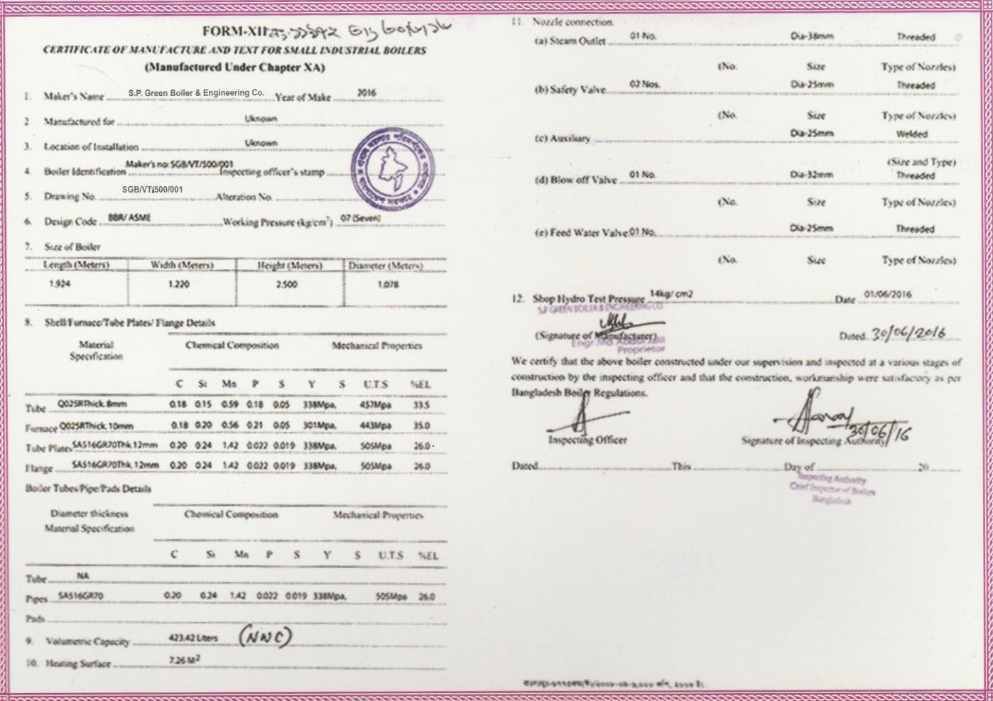 Manufacturing Certificate